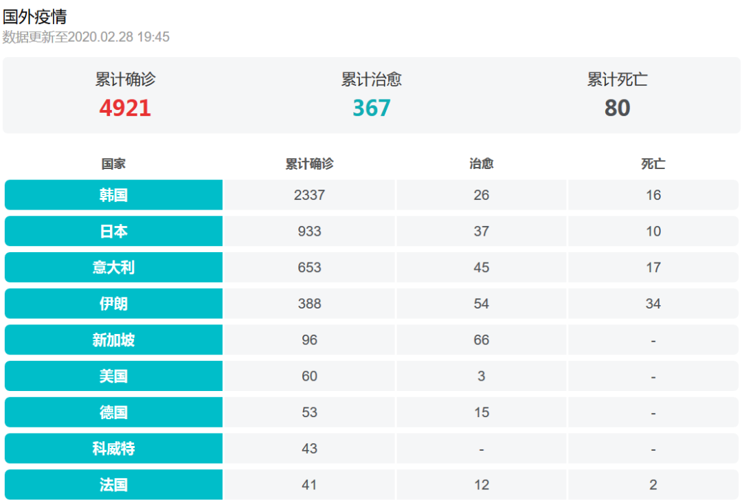 µ±Ç°ÒßÇéÐÎÊÆ£¬ÕýÔÚº«¹ú¡¢ÈÕ±¾¡¢Å·ÃÀ¡¢Öж«µÈµØÇø³ÉÀ©É¢×´Ì¬¡£½ØÖ¹2ÔÂ28ÈÕ19ʱ45·Ö£¬º«¹úÀÛ¼ÆÈ·ÕﲡÀýÍ»ÆÆ2000Àý£¬´ï2337Àý£¬Òâ´óÀûµÄÀÛ¼ÆÈ·ÕﲡÀýÒà´ïµ½653Àý¡£
